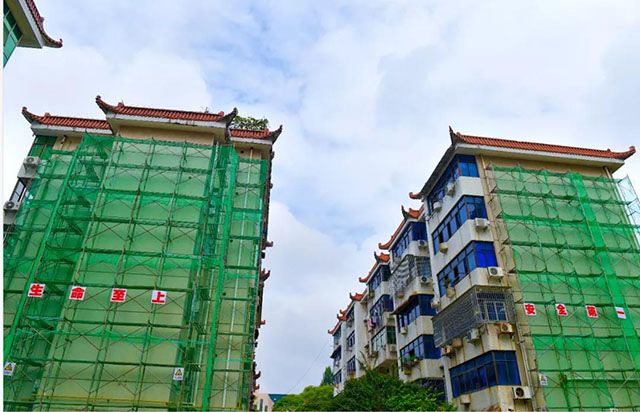 在不遠處的瀏陽一中宿舍改造施工現(xiàn)場,也隨處可見不停忙碌的建筑工人。據(jù)了解,這里的幾棟樓房屋頂改造已經(jīng)結(jié)束,工人們正進行外立面改造施工。