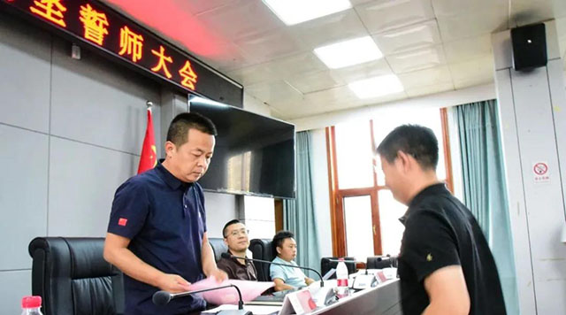 會(huì)上,各施工單位依次遞交了2021年瀏陽(yáng)市示范老舊小區(qū)改造承諾書。