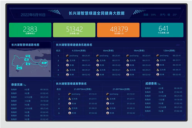 “參與者可以一邊運動,一邊實時掌握距離、時長、配速、能耗、排名等運動數(shù)據(jù),讓運動更科學(xué)。”長興湖健康主題公園智慧跑道相關(guān)負(fù)責(zé)人介紹。