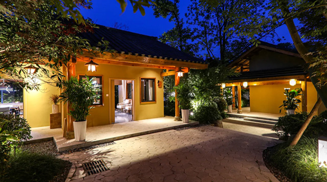 “云上的小院”民宿就是由“云上的小店”綜藝節(jié)目錄制使用的民房改造而成,節(jié)目組成員汪涵、沈夢(mèng)辰、楊迪居住的房子改造成了民宿客房,節(jié)目組的設(shè)備房、機(jī)房則改造成了民宿配套的茶室、文娛室等,同時(shí)利用房子周邊的山林空地,打造了一處中式庭院。
