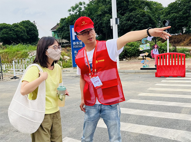 “往前走到頭左轉(zhuǎn)到達(dá)免費(fèi)觀賞區(qū),穿過(guò)觀賞區(qū)后沿主通道直行到底,即可到達(dá)營(yíng)地入口。”在天空營(yíng)地的停車場(chǎng),瀏發(fā)集團(tuán)志愿者劉鵬耐心為游客指引道路。另一處,錦程大道與水佳路交叉口,志愿者謝思忙個(gè)不停:“沒(méi)買票的話,活動(dòng)當(dāng)天18:30會(huì)開(kāi)放線下現(xiàn)場(chǎng)體驗(yàn)票銷售,您可以去天空營(yíng)地入口找工作人員咨詢?!笨吹剿南聫埻?、面露茫然的游客,謝思還會(huì)主動(dòng)向前詢問(wèn)是否需要幫助。