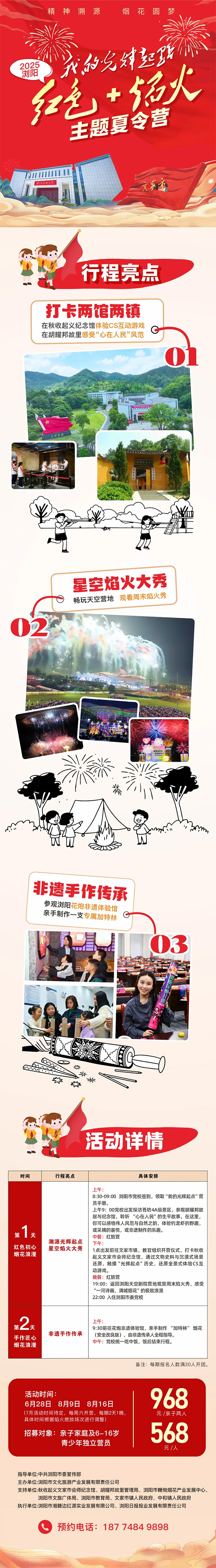 該夏令營融合了天空劇院焰火秀、兩館兩鎮(zhèn)紅色景點、非遺手作等瀏陽特色文旅資源,每期2天1晚,設親子營和少年營兩大板塊,快看詳情: