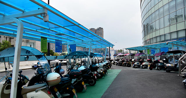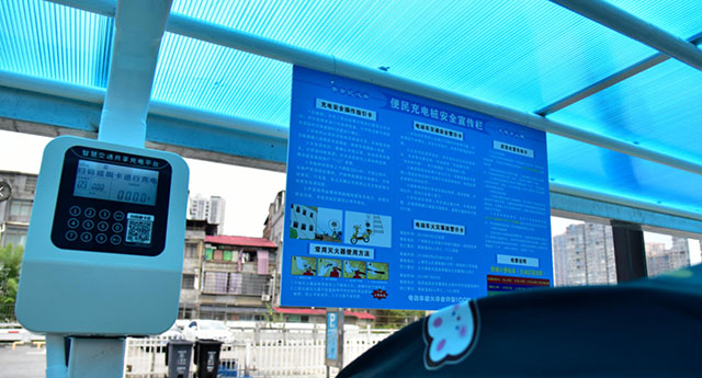財(cái)富新世界小區(qū)有700余戶居民,毗鄰?fù)ǔ躺虡I(yè)廣場(chǎng),日常約有300多輛摩托車,“充電難”問(wèn)題長(zhǎng)期困擾居民。瀏發(fā)集團(tuán)在項(xiàng)目中利用小區(qū)閑置空地新建4套充電棚,提供40多個(gè)充電端口。