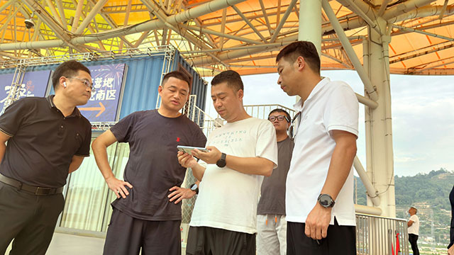 瀏發(fā)集團(tuán)工程線與工人們?nèi)找辜影嗉狱c(diǎn),測(cè)量、打樁、安裝……將雜亂的工地找平、填方,再將一塊塊鐵皮圍擋和照明、廣播應(yīng)急設(shè)施等一一安裝好,只為給數(shù)萬(wàn)游客提供一次最踏實(shí)的安全觀賞之旅。