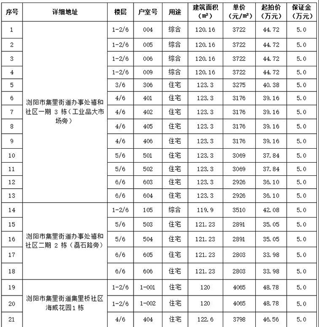 受湖南省瀏陽市恒遠(yuǎn)建設(shè)開發(fā)有限公司委托,根據(jù)國有資產(chǎn)管理的相關(guān)規(guī)定,我公司定于2021年12月17日上午10:00在瀏陽市城鄉(xiāng)發(fā)展集團有限責(zé)任公司8樓會議室(人民東路60號),對位于禧和社區(qū)一期、禧和社區(qū)二期、海威花園1棟等35套安置房面向社會進行公開拍賣,標(biāo)的情況見下表: