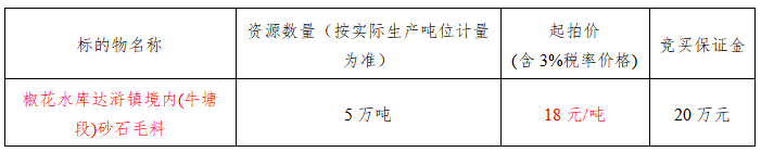 4.信息說明詳見長沙瀏河拍賣有限公司《拍賣規(guī)則》及《椒花水庫達滸境內(nèi)(牛塘段)砂石毛料資源銷售合同》。