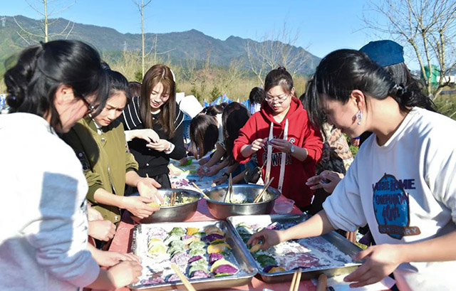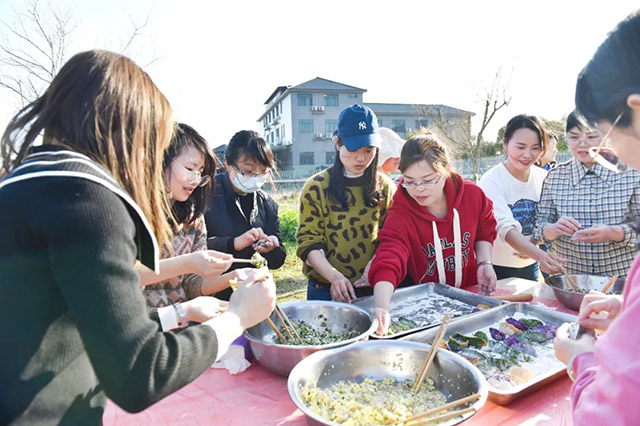 有的調(diào)餡、有的搟皮、有的包餃子、還有的負(fù)責(zé)“吃”……只見(jiàn)手指翻飛間,一個(gè)個(gè)穿著靚麗外衣的水餃揉捏而成,大家成就感滿滿,也感受到了節(jié)日的溫馨。