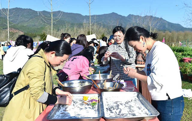春風(fēng)和煦、陽(yáng)光明媚,瀏發(fā)女神們正在用靈巧的雙手穿針線、選布料、包藥材,完成一道道工序后,一個(gè)個(gè)小巧精致、立體飽滿的草本香包很快便躍然眼前,空氣中彌漫著清幽的香氣,也洋溢著大家的歡聲笑語(yǔ)。