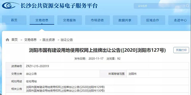 有意競(jìng)買者可登錄長(zhǎng)沙市國(guó)土資源交易網(wǎng)上交易系統(tǒng)(http://fwpt.csggzy.cn/jyxxgtcrgg/35097.jhtml)進(jìn)行查詢。申請(qǐng)人可于2020年11月17日至2020年12月17日,在網(wǎng)上瀏覽或下載本次掛牌出讓文件,并按文件規(guī)定的操作程序參加競(jìng)買。