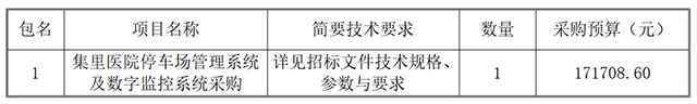 集里醫(yī)院停車場(chǎng)管理系統(tǒng)及數(shù)字監(jiān)控系統(tǒng)采購