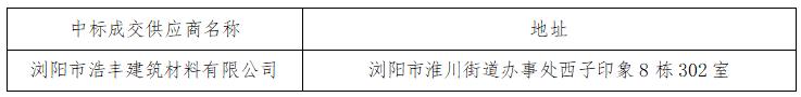 瀏陽市五環(huán)建設(shè)開發(fā)有限公司對(duì)瀏陽市棖沖鎮(zhèn)青草完小教學(xué)綜合樓建設(shè)項(xiàng)目門窗進(jìn)行公開采購,現(xiàn)將采購結(jié)果公告如下: