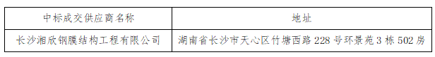 瀏陽市五環(huán)建設開發(fā)有限公司對膜結構進行公開采購,現(xiàn)將采購結果公告如下: