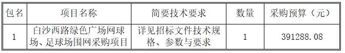 一、采購項(xiàng)目名稱:白沙西路綠色廣場網(wǎng)球場、足球場圍網(wǎng)采購項(xiàng)目