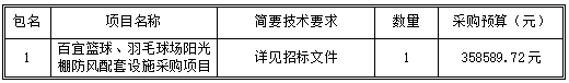 一、采購項(xiàng)目名稱:百宜籃球、羽毛球場陽光棚防風(fēng)配套設(shè)施采購項(xiàng)目