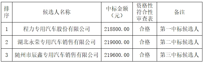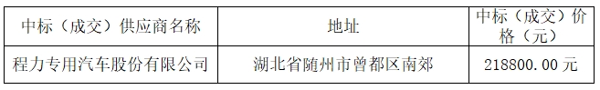 受 湖南株樹橋城市運(yùn)營(yíng)服務(wù)有限責(zé)任公司 的委托,湖南捷成工程項(xiàng)目管理有限公司對(duì) 大圍山森林公園垃圾收集清運(yùn)項(xiàng)目后掛式壓縮垃圾車采購 進(jìn)行公開招標(biāo)采購,現(xiàn)將采購結(jié)果公告如下: