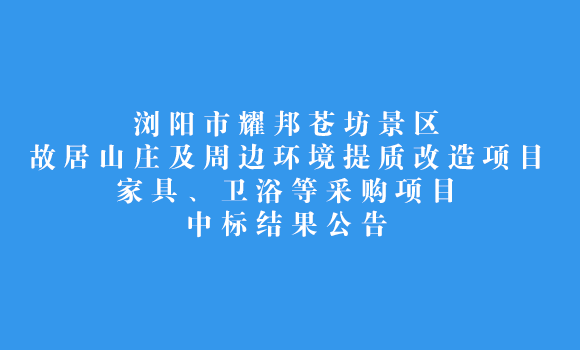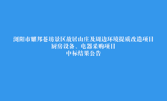 受瀏陽(yáng)市文化旅游產(chǎn)業(yè)發(fā)展有限責(zé)任公司的委托,湖南淳晟項(xiàng)目管理有限公司對(duì)瀏陽(yáng)市耀邦蒼坊景區(qū)故居山莊及周邊環(huán)境提質(zhì)改造項(xiàng)目廚房設(shè)備、電器采購(gòu)項(xiàng)目進(jìn)行公開招標(biāo)采購(gòu),現(xiàn)將采購(gòu)結(jié)果公告如下: